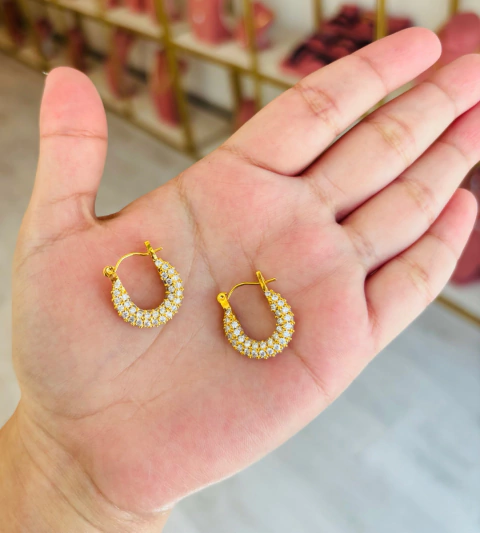 Aretes dorados en forma de herradura con circonias.